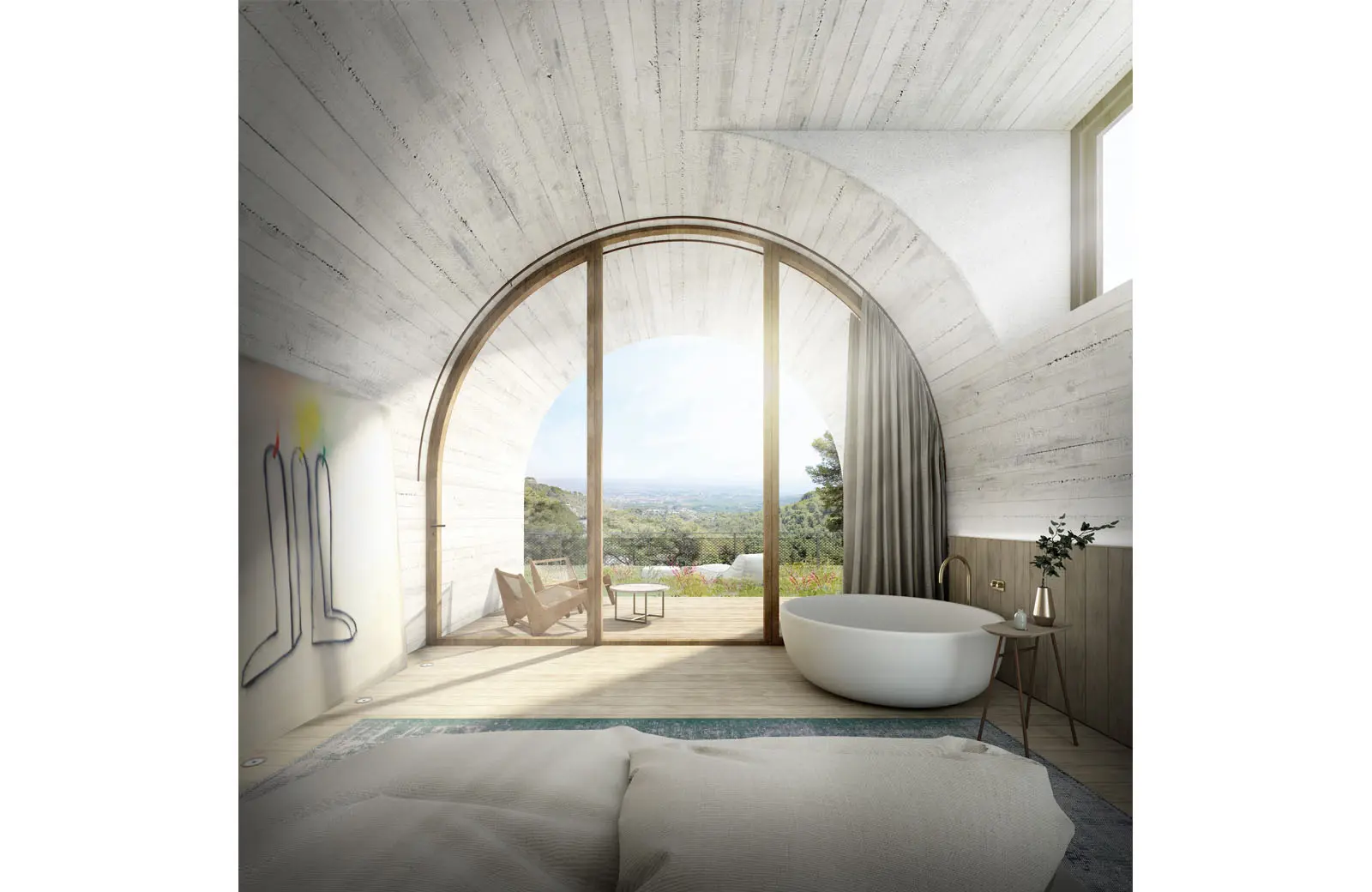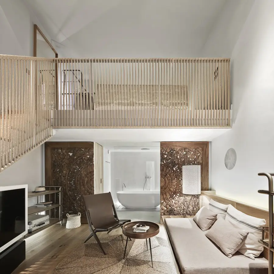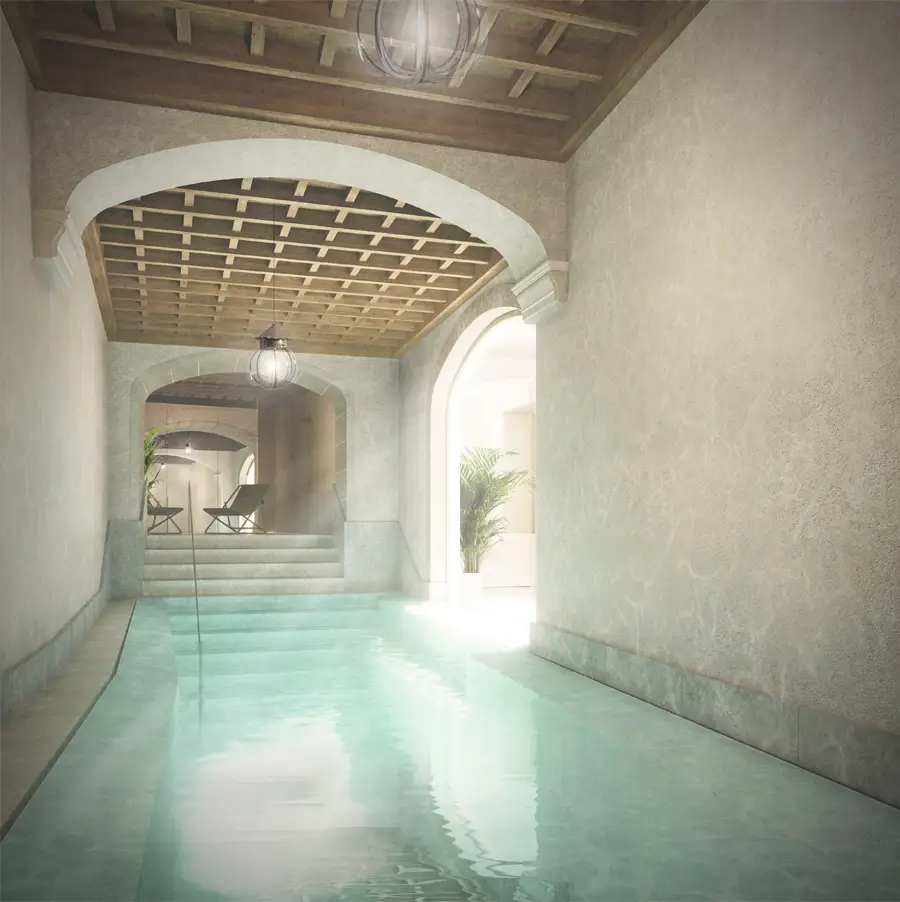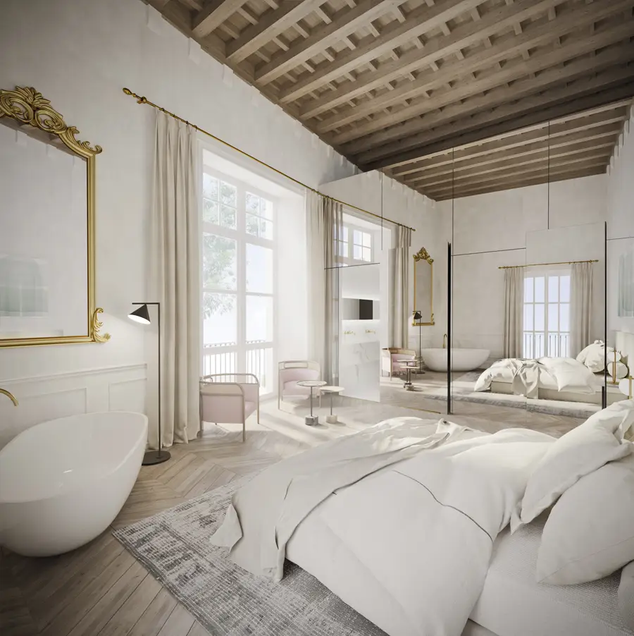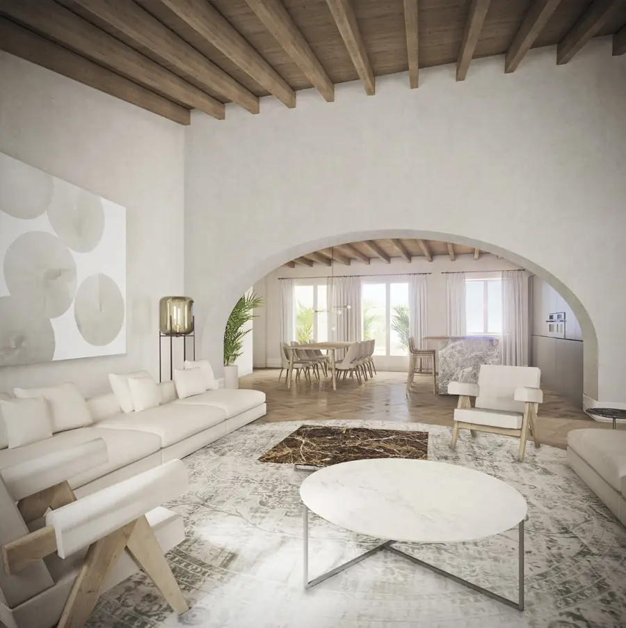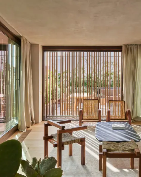 En el diseño interior de Paseo Mallorca 15, hemos seleccionado cuidadosamente materiales naturales y locales que resaltan la esencia mediterránea. La paleta de materiales nobles, que incluye nogal francés, cedro, roble, cal y piedras locales, contribuye a una experiencia única para los residentes.