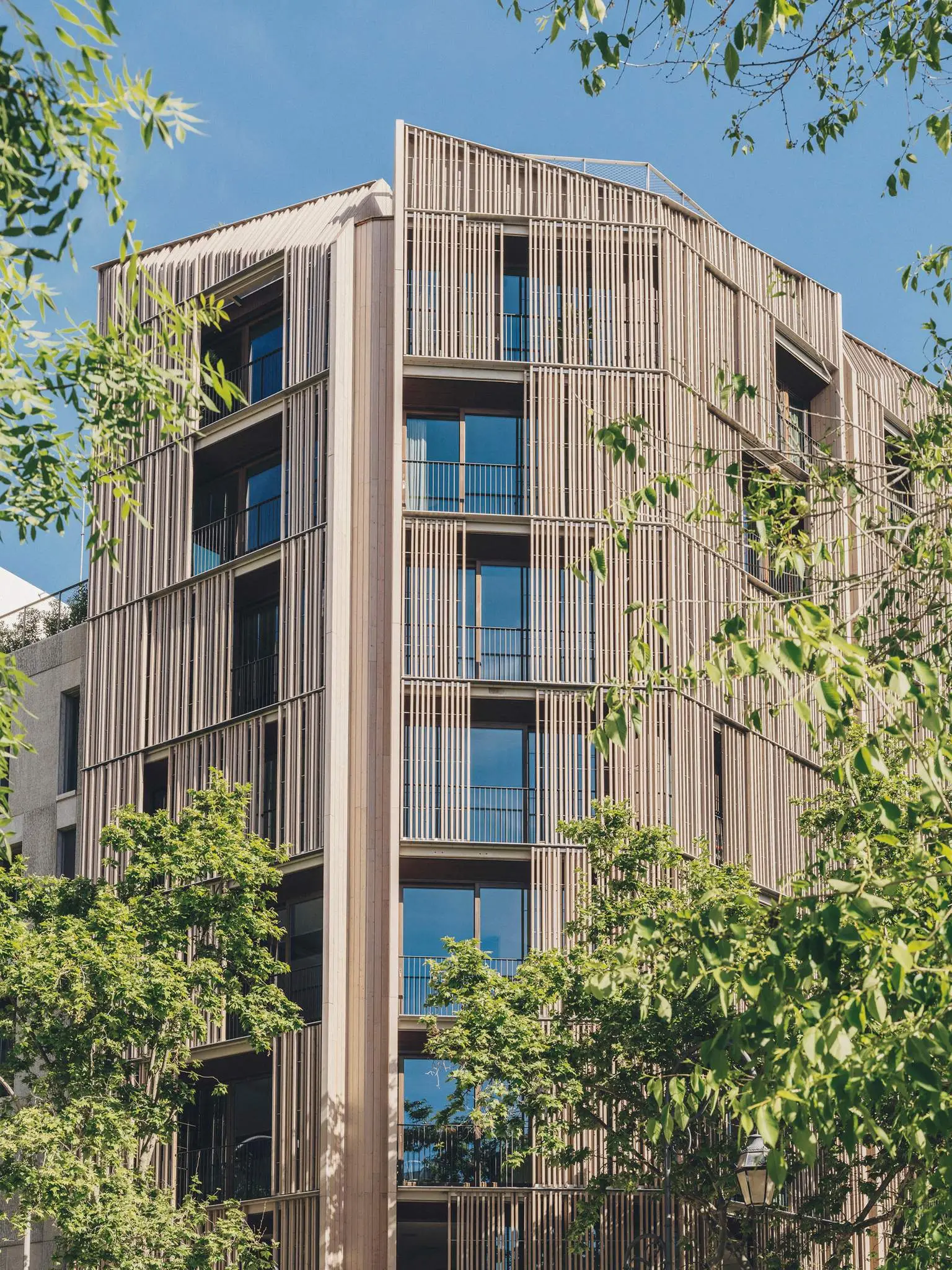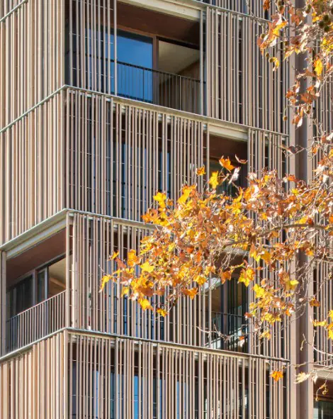 “Paseo Mallorca 15”, ubicado estratégicamente en Paseo Mallorca, refleja nuestra dedicación a la arquitectura contextual y sostenible. El diseño fragmentado responde respetuosamente al entorno, con una fachada de lamas de madera que actúa como un filtro solar dinámico, optimizando la eficiencia energética. Siguiendo estándares Passivhaus, el proyecto establece un nuevo estándar en construcciones de consumo casi nulo.