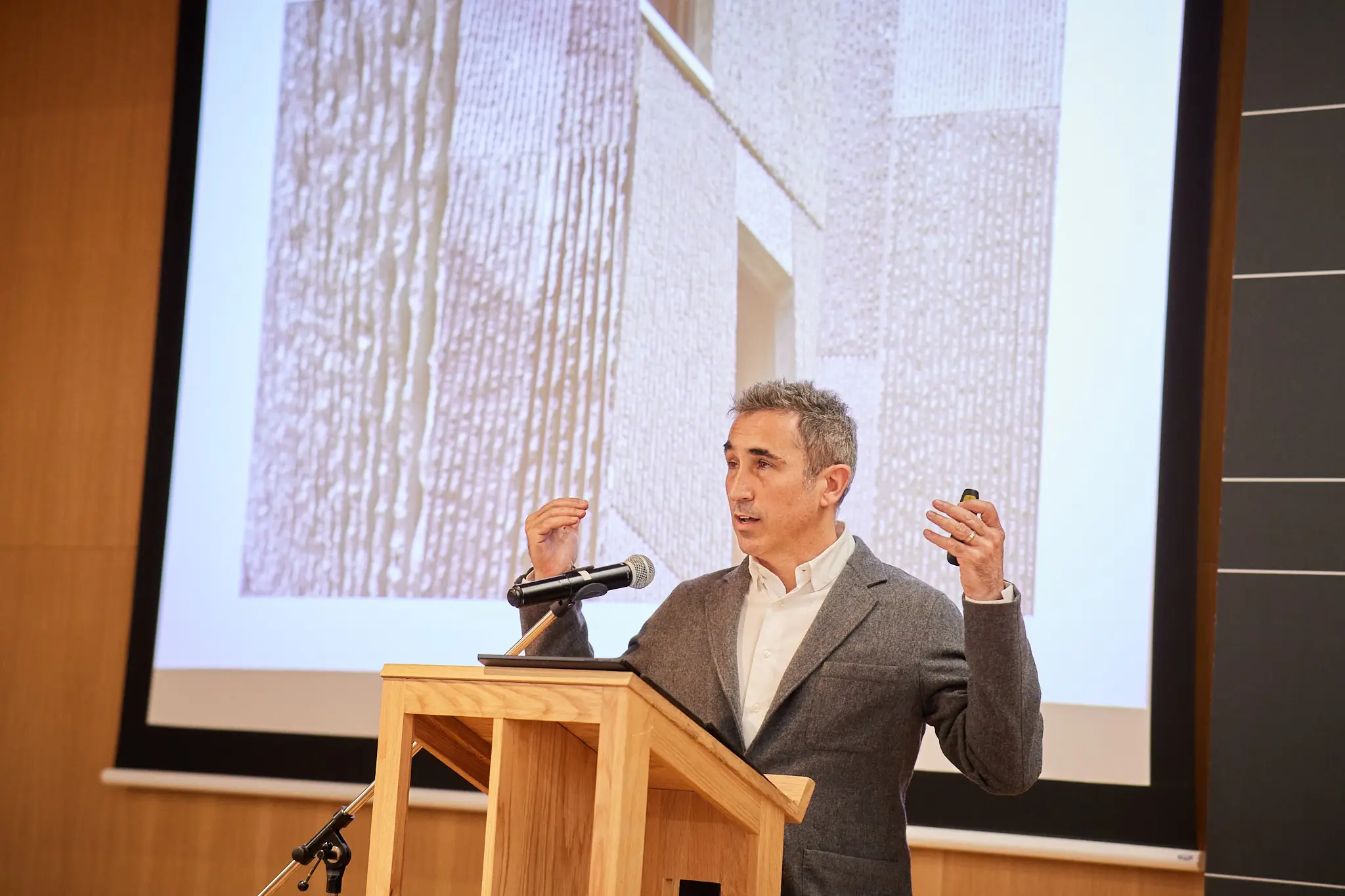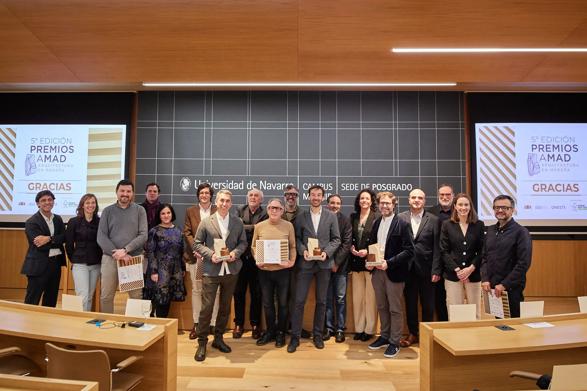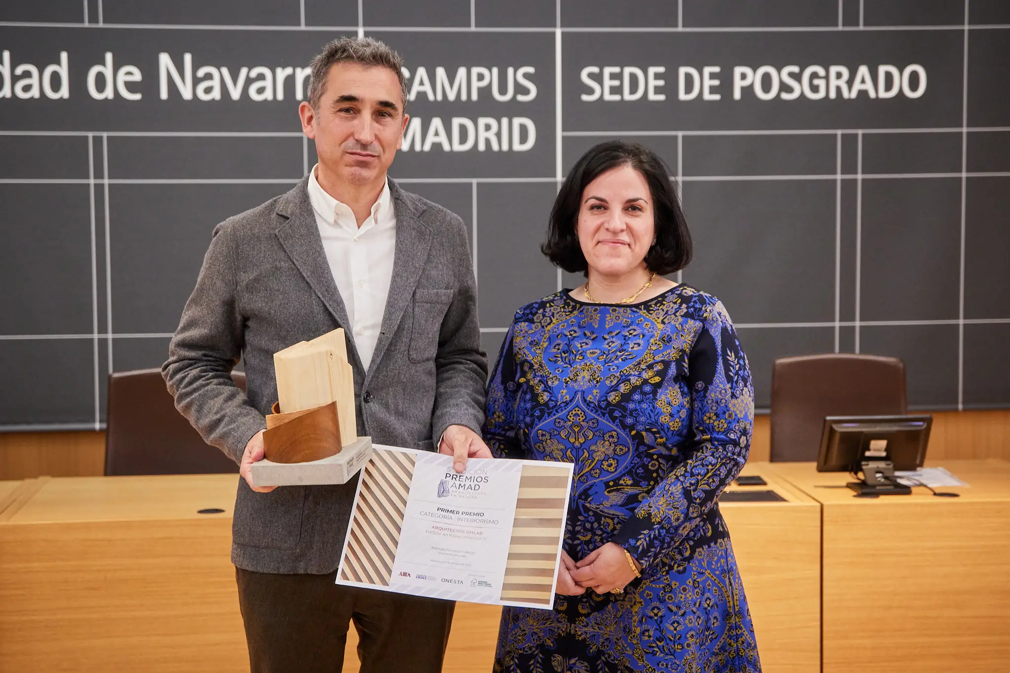 En la sede de posgrado de la Universidad de Navarra en Madrid, en el marco de los premios AMAD, donde el proyecto Paseo Mallorca 15 resultó ganador, Jaime Oliver, codirector y cofundador de OHLAB, impartió una charla para explicar el proyecto y el uso sostenible de la madera.