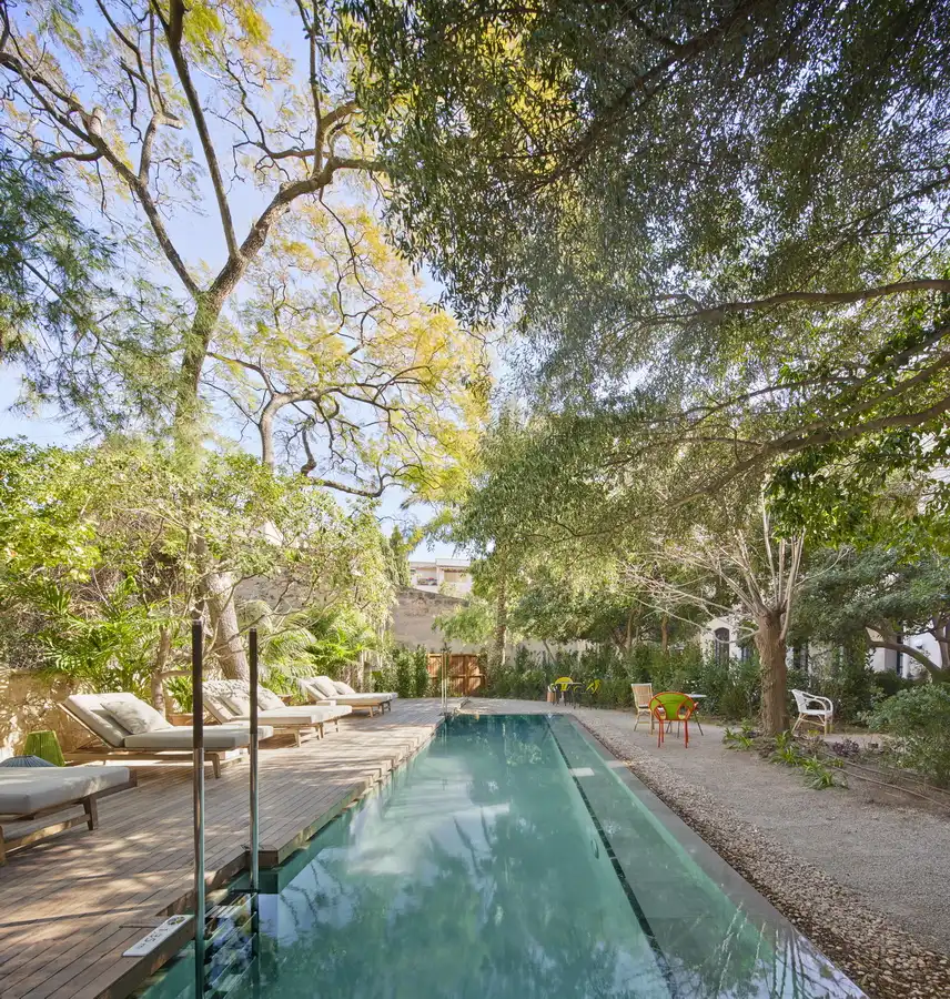 Este proyecto se distingue por la integración de elementos naturales, como un muro vegetal de caña autóctona que rinde homenaje a la Riera del Paseo Mallorca. Un patio interior con vegetación y niveles diferenciados crea un oasis de tranquilidad en el corazón de la ciudad.