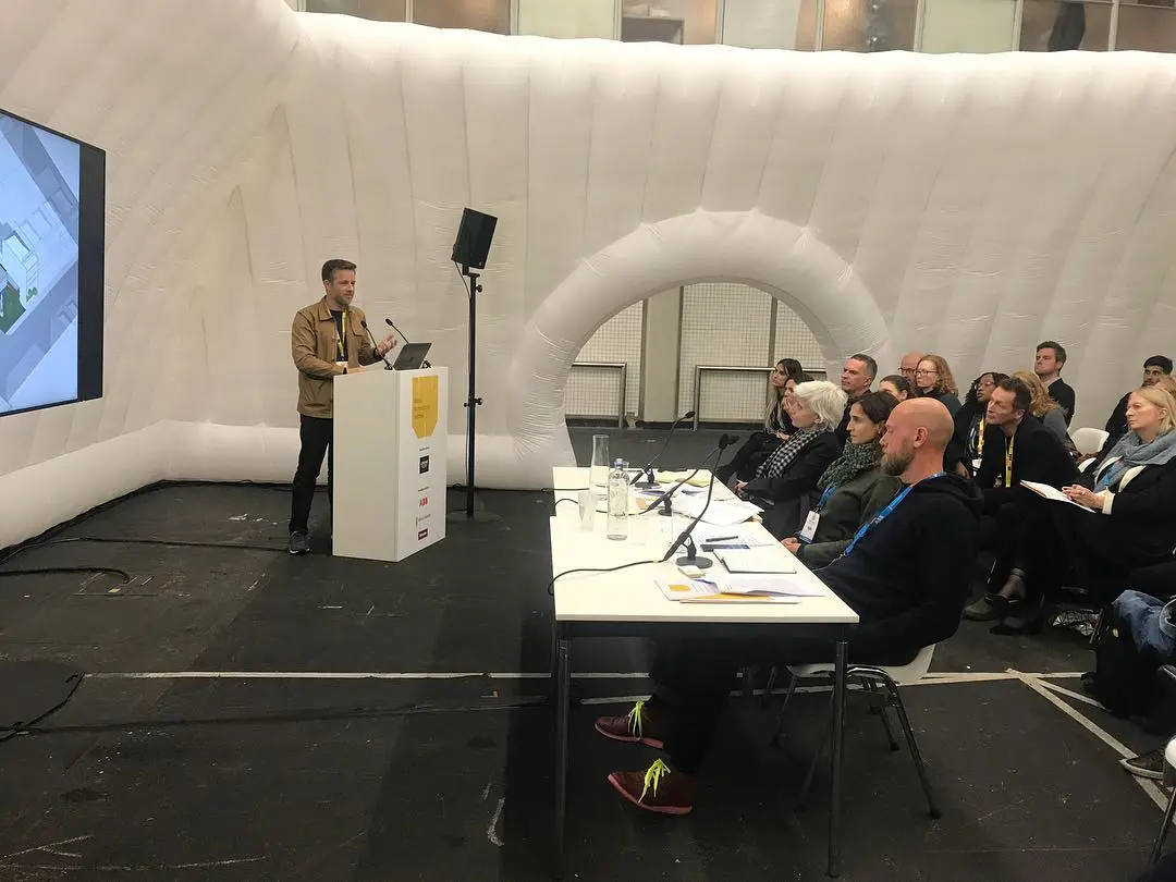 Los fundadores y directores de la firma explicaron varios proyectos a escalas muy diversas; mobiliario, tiendas y edificios, donde se han trabajado los espacios como escenografías para ser habitadas, pensando en los futuros usuarios como actores y audiencia.