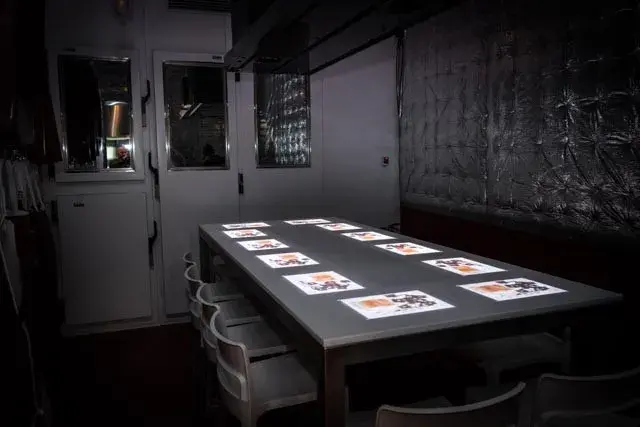 Desde una mesa-pupitre para 12 académicos/comensales que se convierte en el epicentro de Academia del Despiece. A modo de pizarra interactiva, en ella se ofrece la información necesaria para que cada curso/cena se convierta en la herramienta principal de aprendizaje. Una Academia sin profesores donde el producto marca la línea a seguir y el sistema de docencia digital sirve de guía a los alumnos durante toda la degustación. Esto permite que la experiencia sea didáctica, interactiva y por supuesto divertida. Cada académico dispondrá de un set de herramientas con las que trabajará durante el proceso de aprendizaje