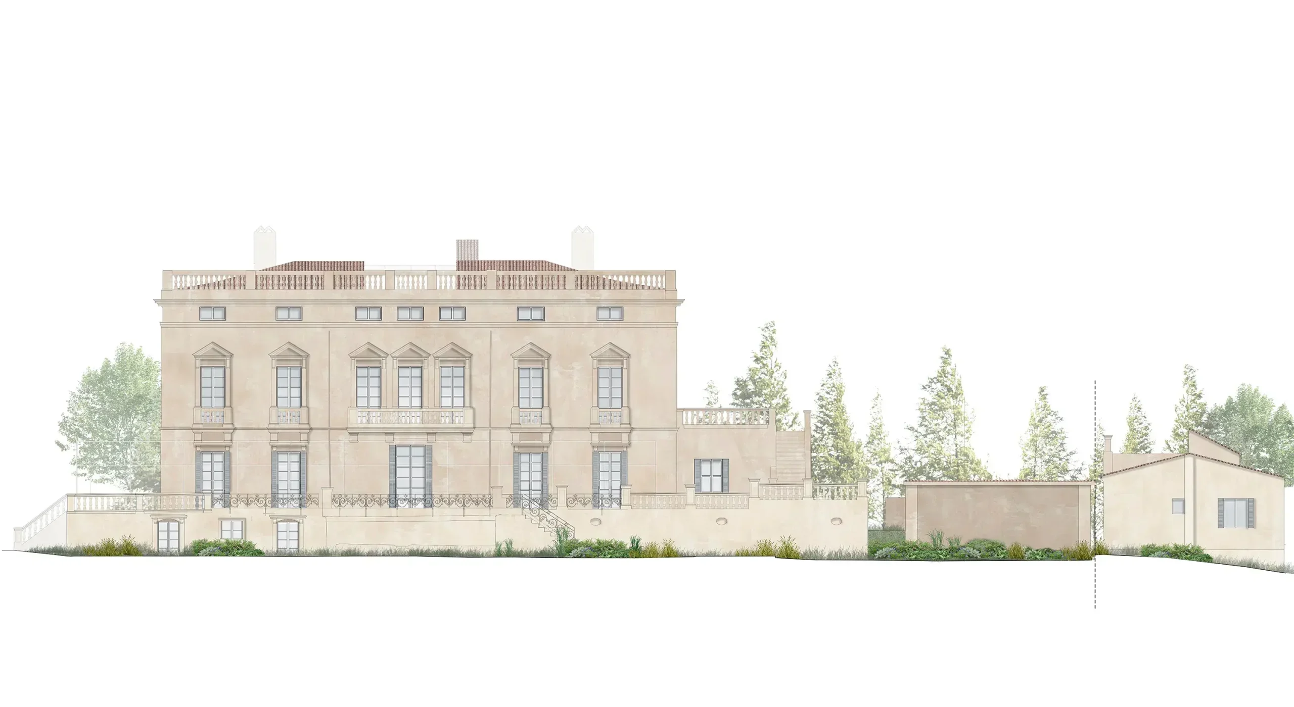 Son Buit es una casa señorial histórica situada en La Bonanova, en una de las posiciones más privilegiadas de Palma. Entre el bosque de Bellver y la bahía, la propiedad conserva una condición cada vez más rara en la ciudad: la de un oasis doméstico donde arquitectura, jardín, topografía y paisaje forman una unidad inseparable. Su singularidad no reside únicamente en la casa principal, sino en la fuerza del conjunto: las construcciones auxiliares, los muros, los accesos, las terrazas y el jardín histórico conforman una realidad compleja y estratificada, de enorme valor patrimonial y atmosférico. Esa condición se ve reforzada por su máximo grado de protección, una circunstancia excepcional que convierte la intervención en un ejercicio de precisión, cuidado y lectura crítica de lo existente.