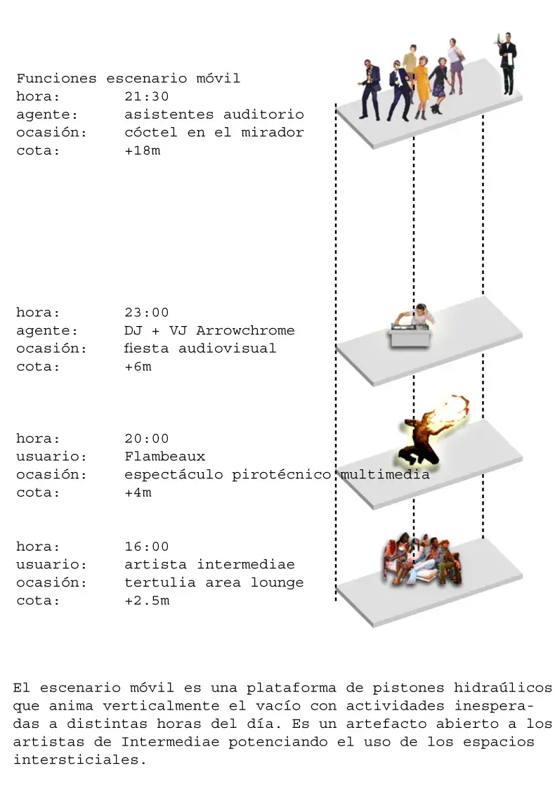 Se respeta y enfatiza el edificio existente como pieza clave para la generación de escenarios múltiples. Vaciamos el edificio manteniendo el envoltorio y la estructura como soporte para el programa. Se aplica el principio de la conservación más que el de la reconstrucción: nos apropiamos de la poderosa imagen de decadencia del edificio y convertimos esta ruina congelada en generadora de nuevos espacios.