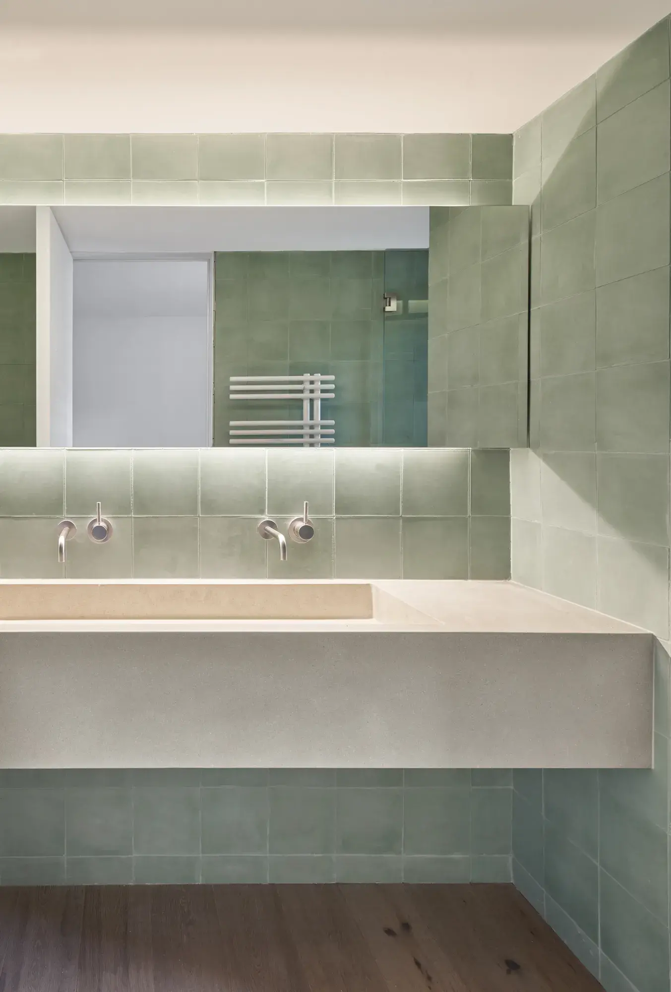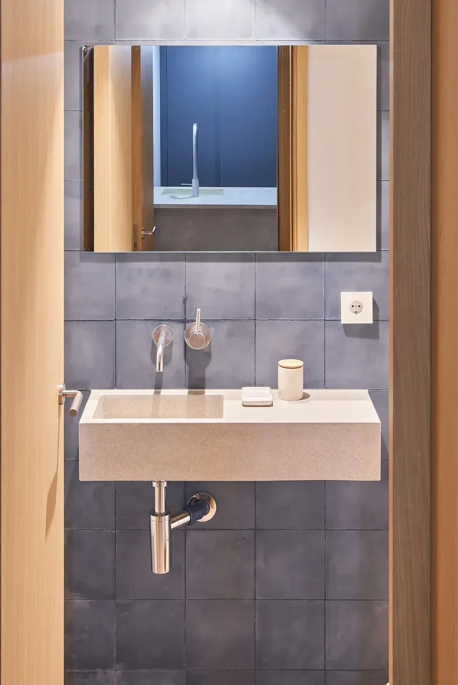 La selección de materiales naturales, locales enfatizando la esencia mediterránea ha sido muy importante. Una paleta simple de materiales nobles como baldosas hidráulicas de cemento mallorquinas, terrazo a medida, suelos y puertas de roble, etc. define el proyecto.