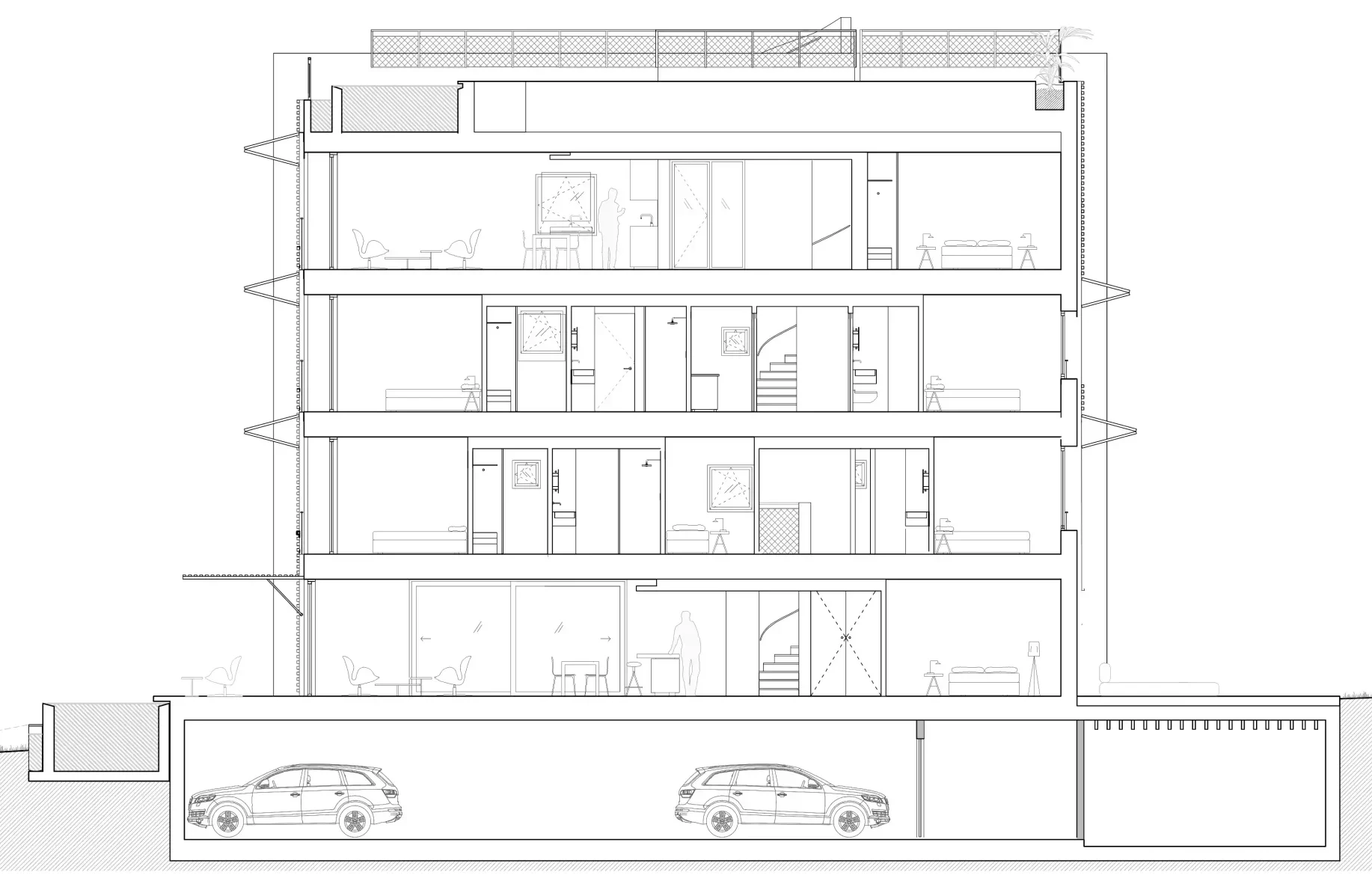 Sacando el máximo partido a la normativa urbanística de pb+3, se han proyectado los edificios para que, a pesar de la densidad y el limitado espacio, cada una de las 12 viviendas pueda disfrutar del ideal suburbano de sostenibilidad, eficiencia energética y privacidad con jardín e incluso piscina privada. De esta forma, todas las viviendas cuentan con su propia piscina privada. Las viviendas, resueltas en duplex, son 6 en planta baja con jardín y piscina y 6 áticos con piscina en la azotea que cuenta con vistas panorámicas hacia a la bahía de palma y también hacia Cala Mayor e Illetas.