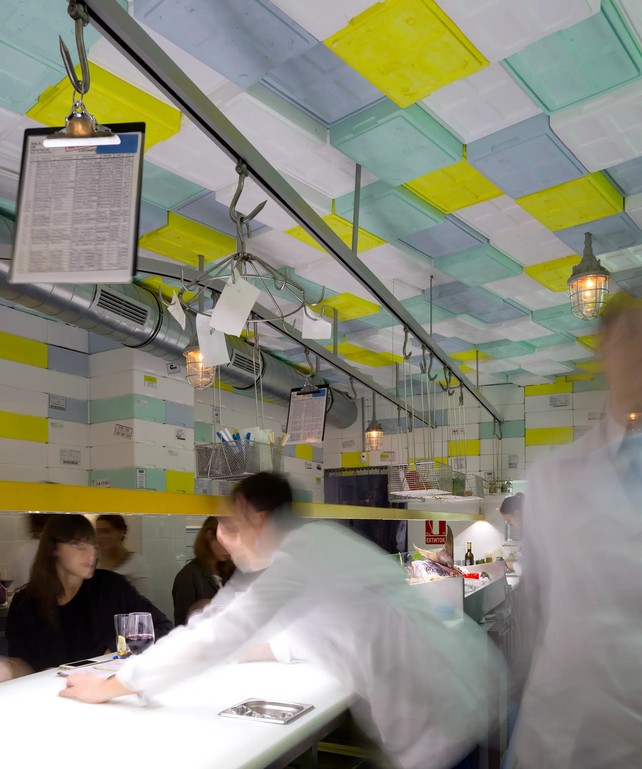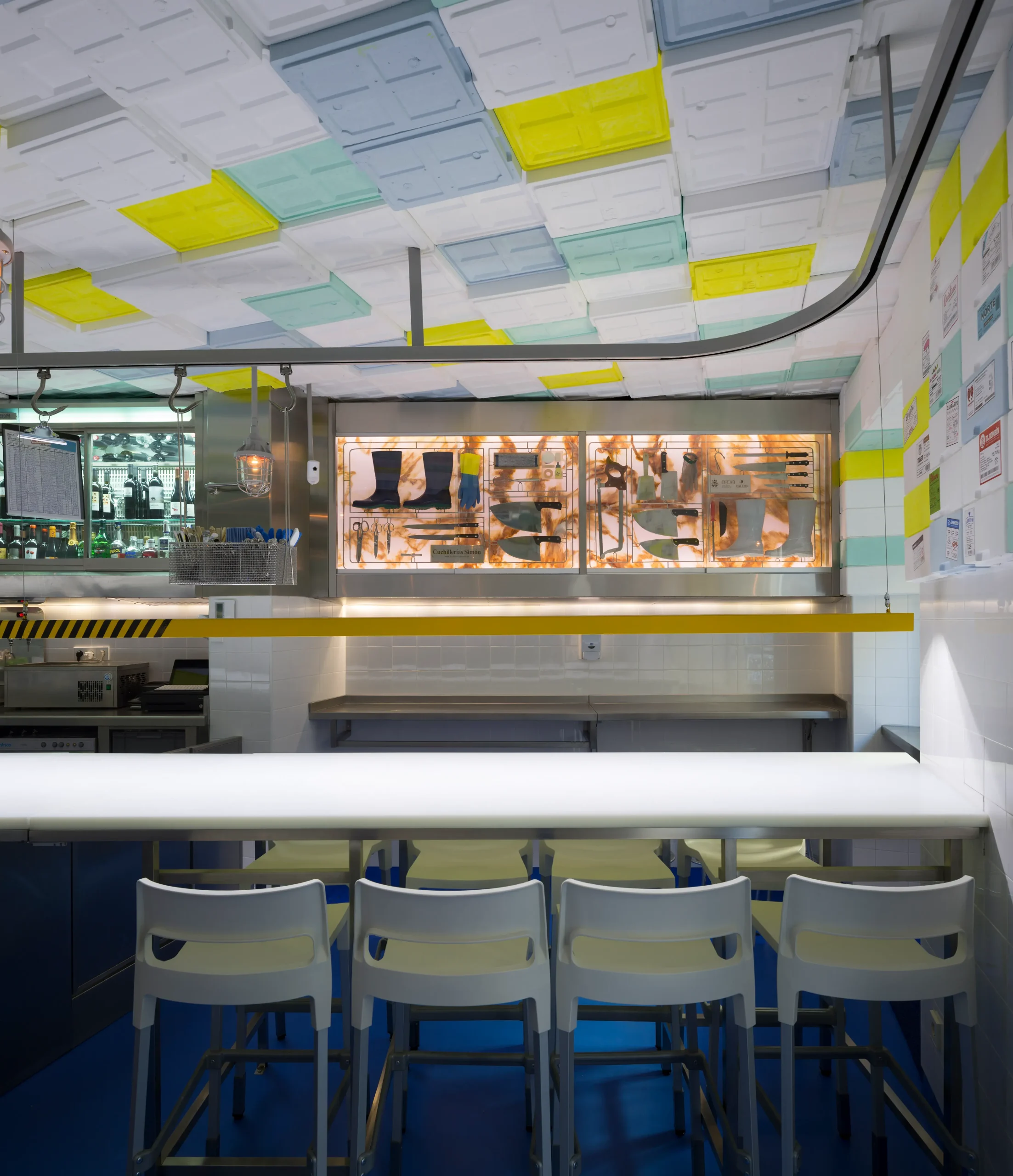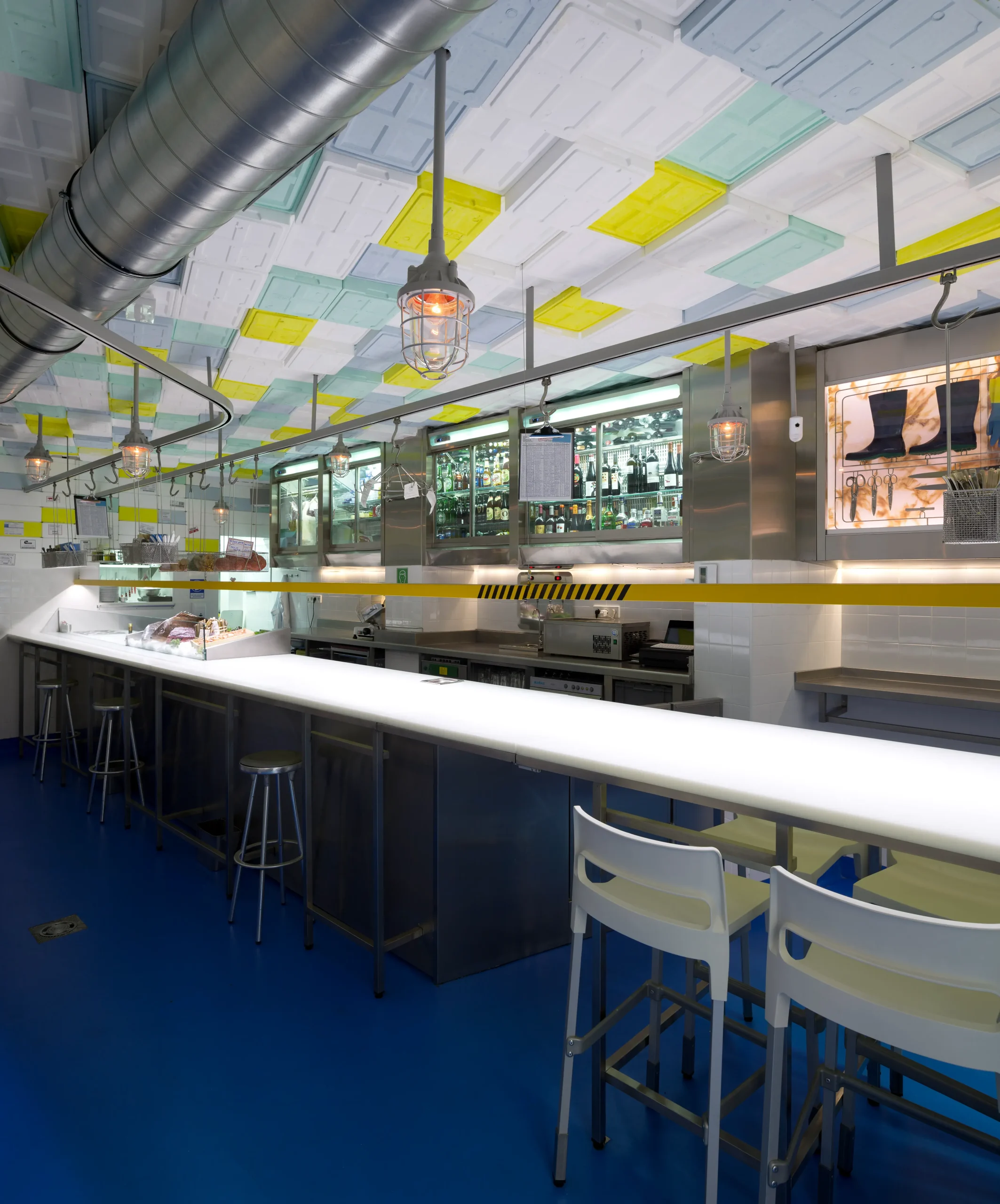 Sala de Despiece es un espacio creado en estrecha colaboración con el equipo del Sr. Bonet que se adapta a un concepto culinario simple, rápido, crudo, eficiente.