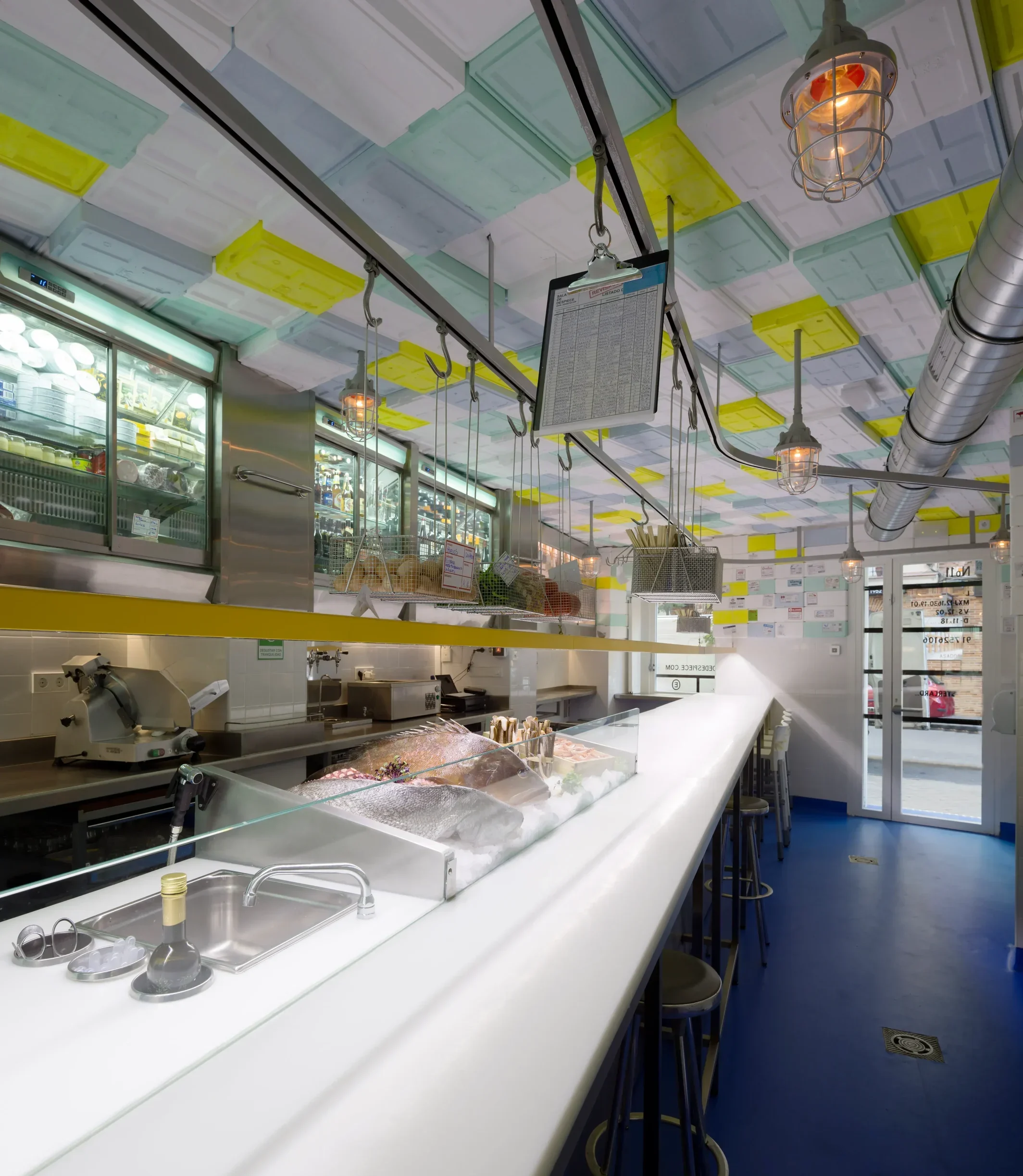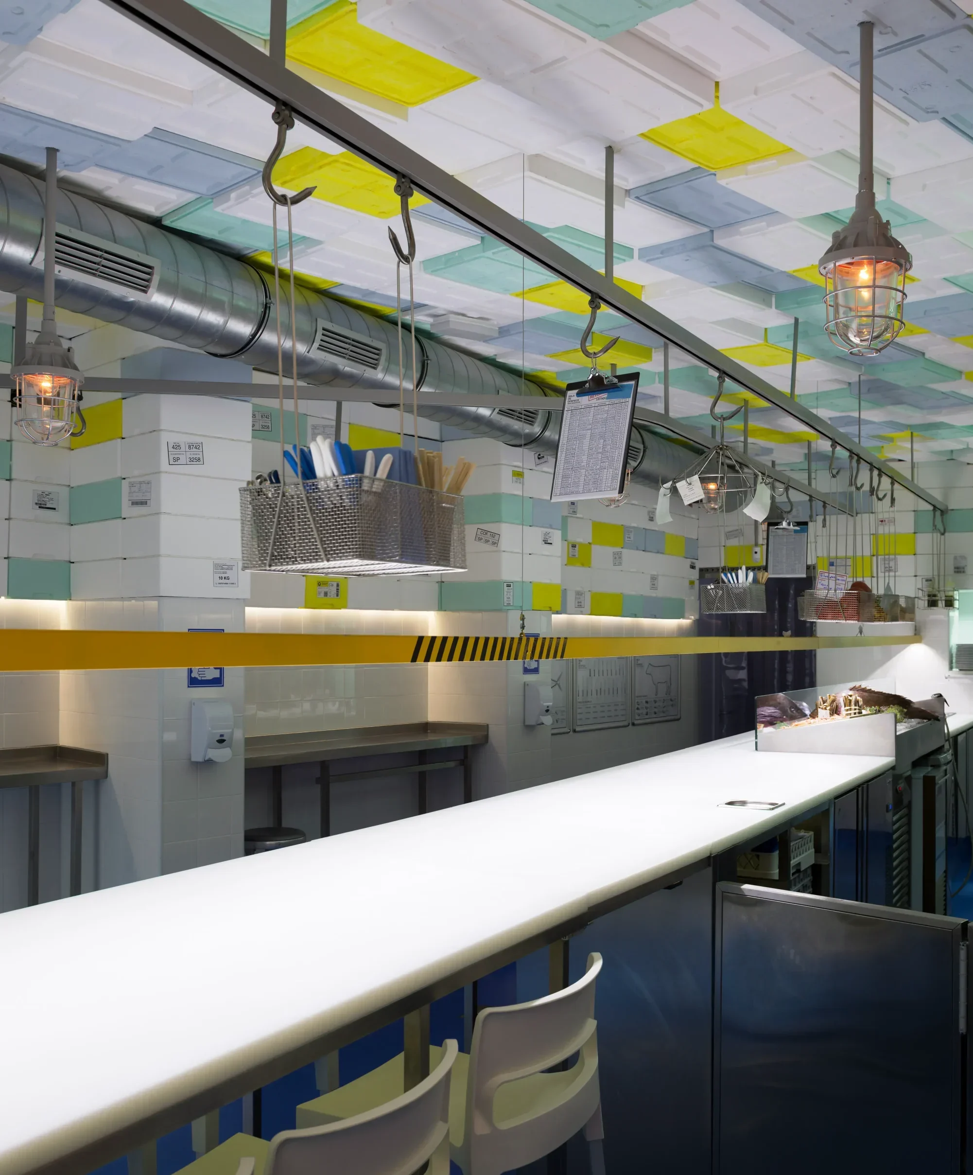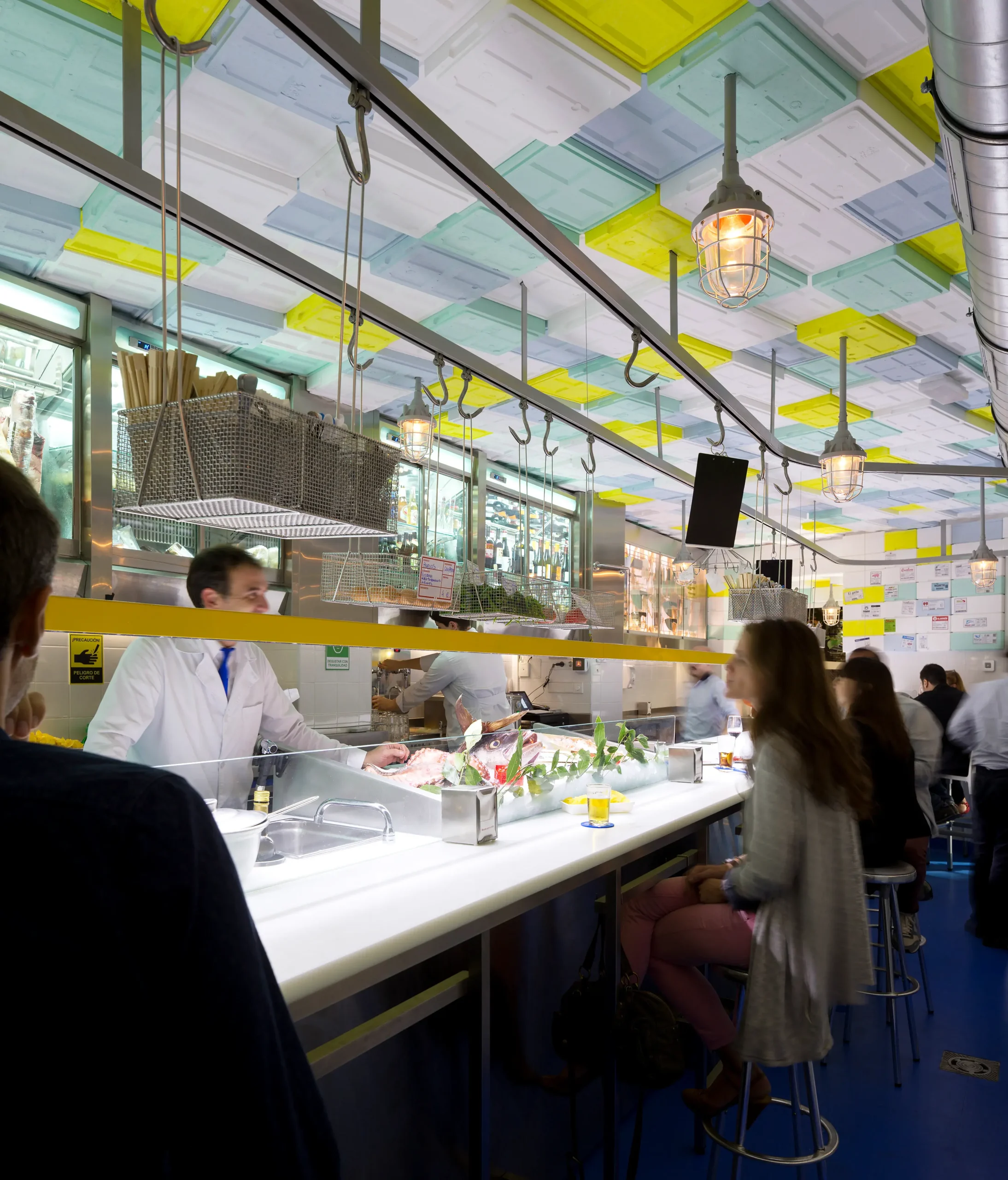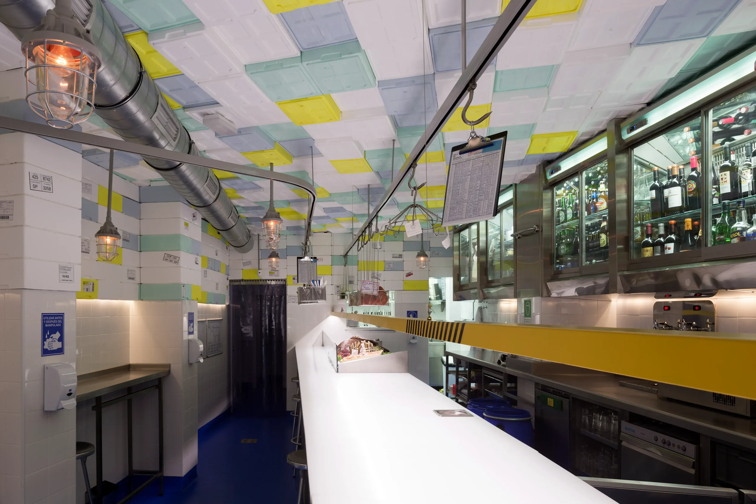 Sala de Despiece es un espacio creado en estrecha colaboración con el equipo del Sr. Bonet que se adapta a un concepto culinario simple, rápido, crudo, eficiente.