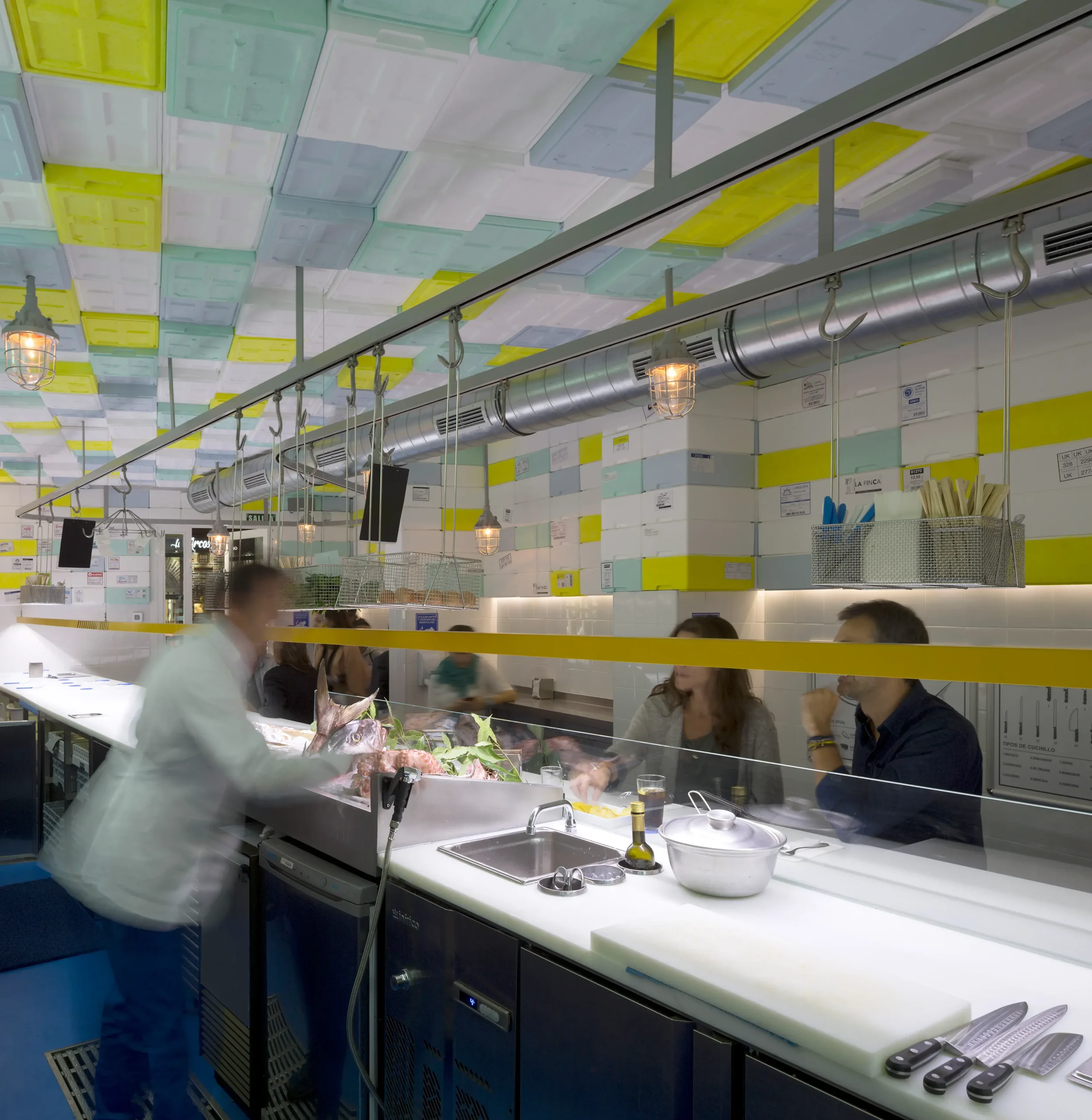 Sala de Despiece es un espacio creado en estrecha colaboración con el equipo del Sr. Bonet que se adapta a un concepto culinario simple, rápido, crudo, eficiente.