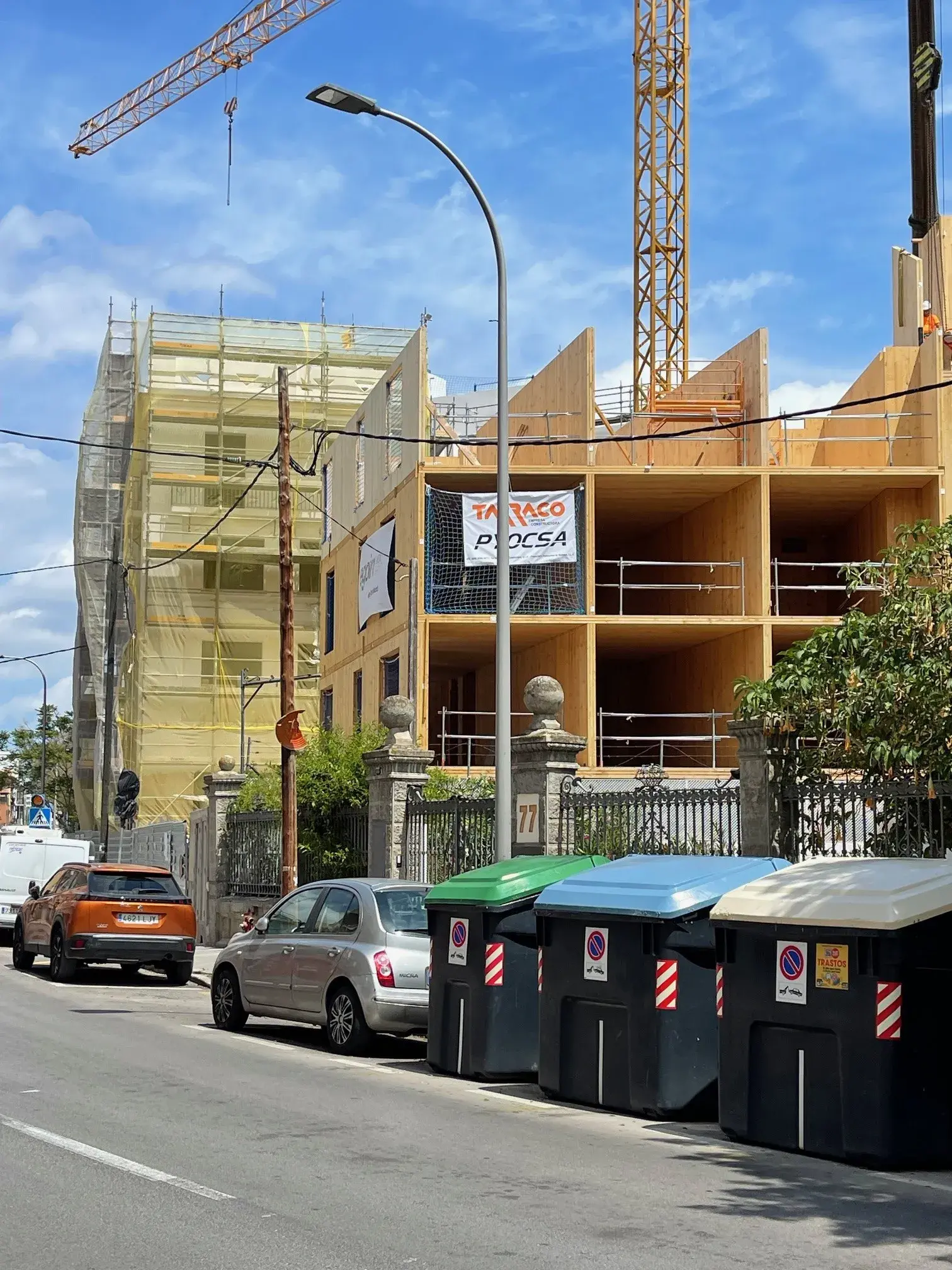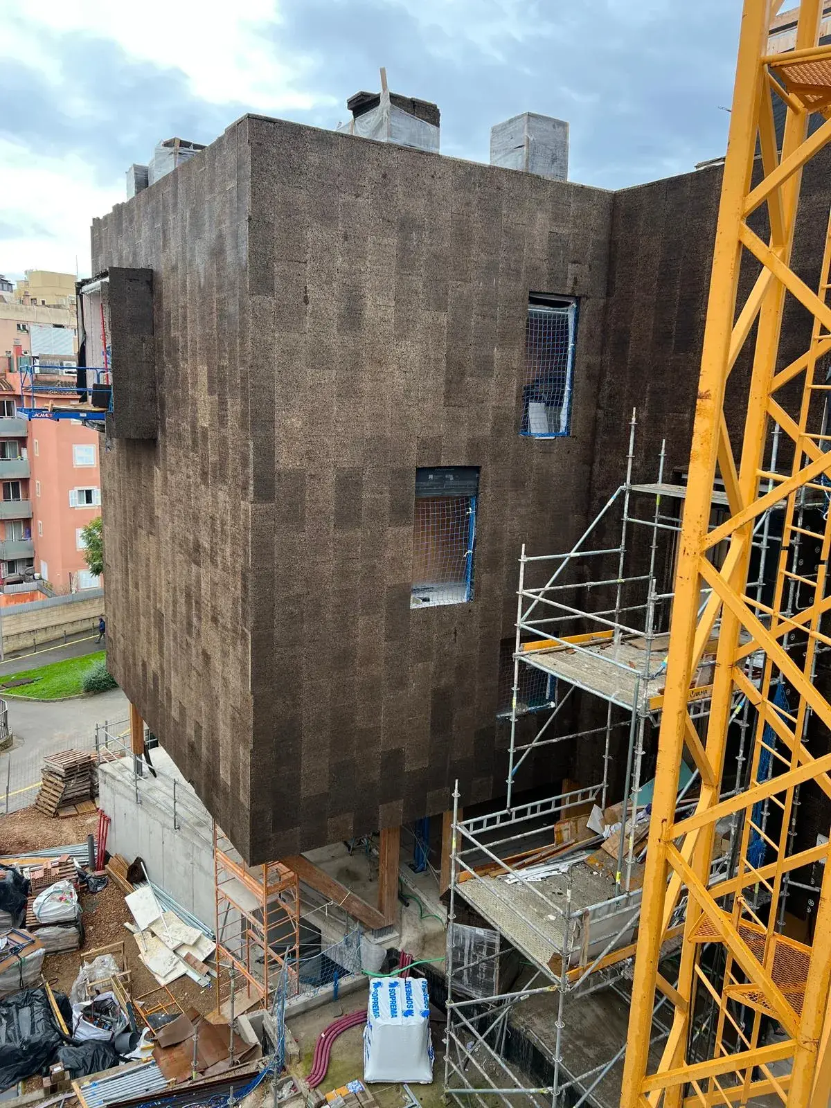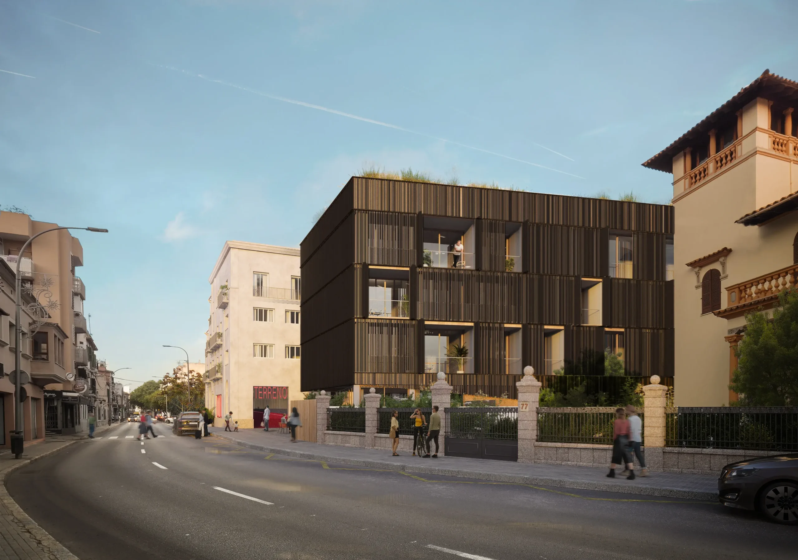 Terreno Barrio Hotel es un hotel urbano de 41 habitaciones situado en El Terreno, en el eje de Joan Miró, y construido a partir de una condición poco habitual: dos piezas radicalmente distintas que se necesitan mutuamente. Por un lado, un edificio protegido de 1935 (Francesc Casas), un híbrido entre regionalismo y racionalismo, atravesado por intervenciones estructurales tardías —toscas, pero eficaces— que hoy forman parte de su biografía. Por otro, una parcela que permite levantar un edificio nuevo de siete plantas, concebido como contrapunto contemporáneo: una estructura de madera CLT diseñada bajo criterios estrictos Passive House (no certificado) y con certificación LEED Platinum