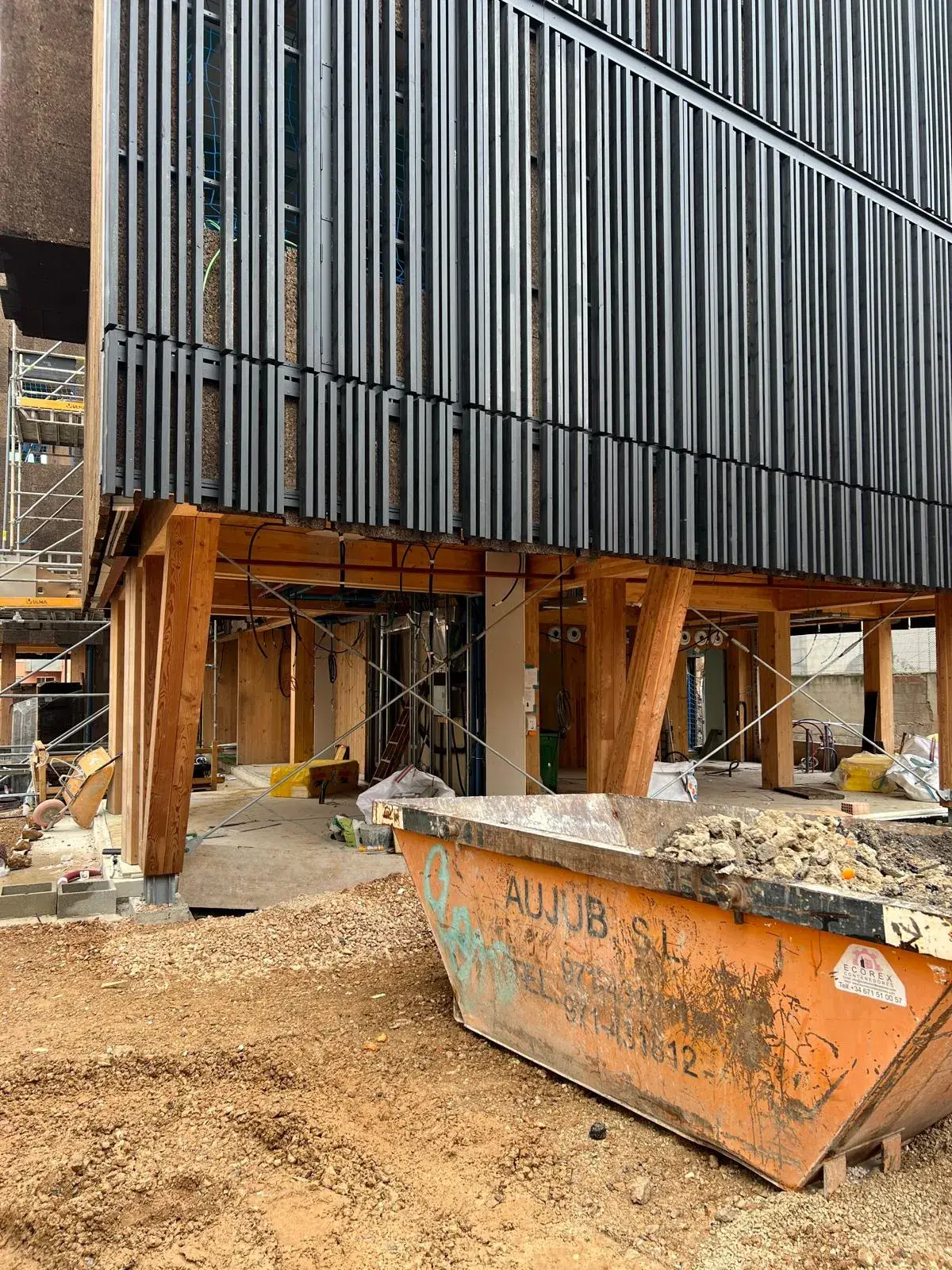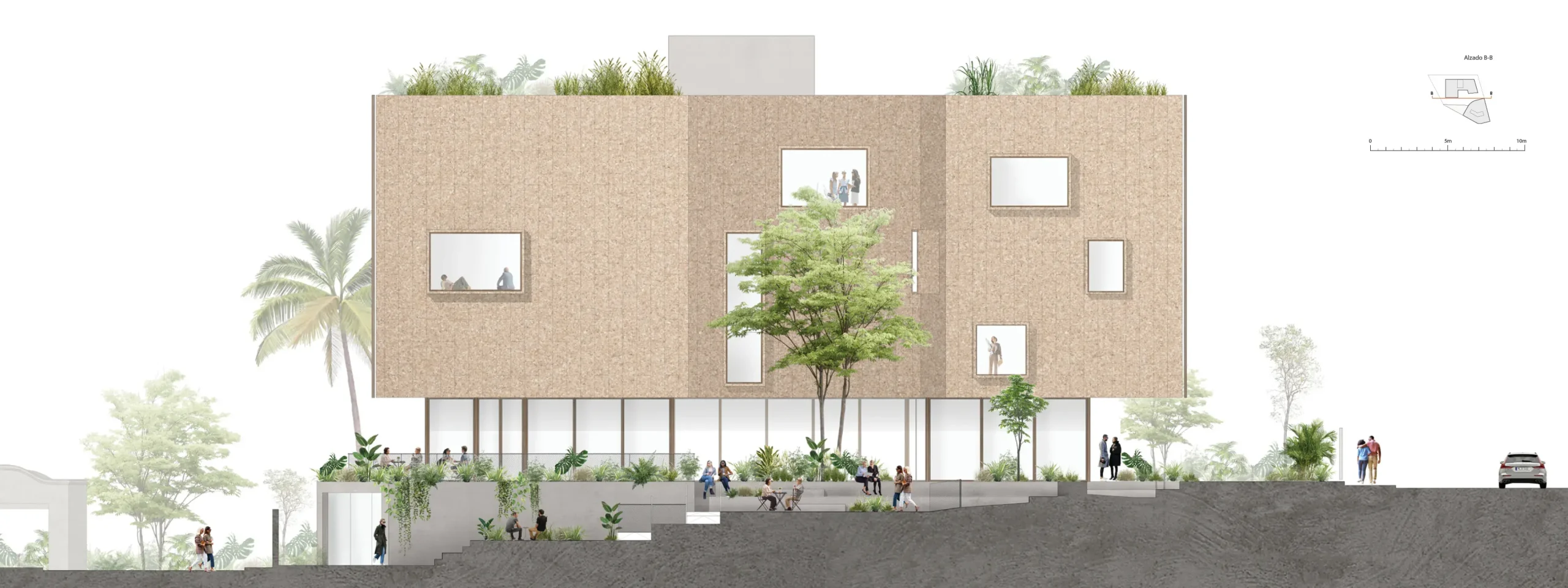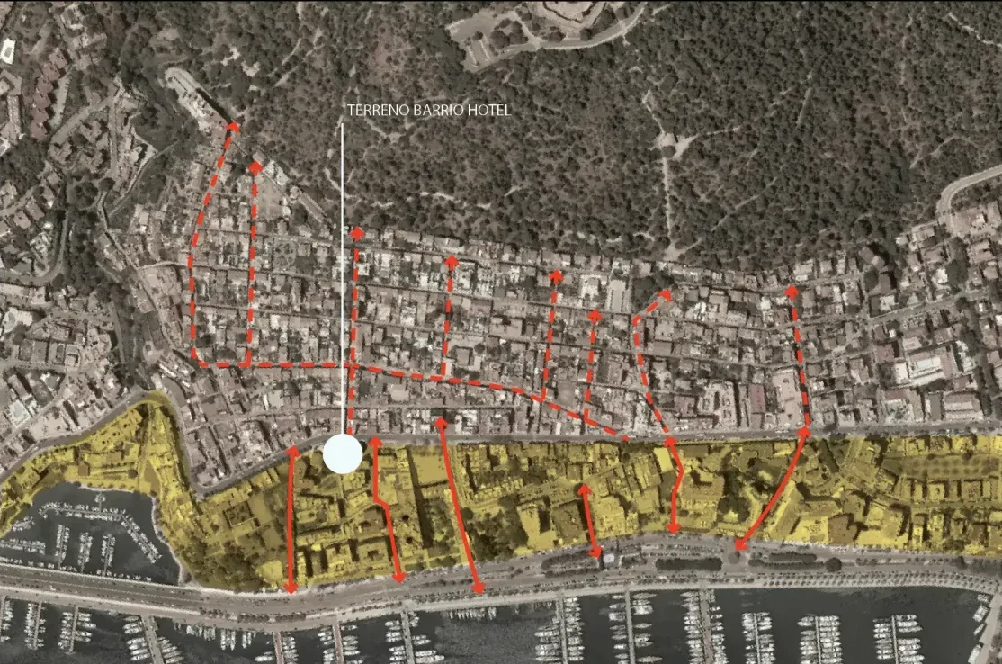 Terreno Barrio Hotel es un hotel urbano de 41 habitaciones situado en El Terreno, en el eje de Joan Miró, y construido a partir de una condición poco habitual: dos piezas radicalmente distintas que se necesitan mutuamente. Por un lado, un edificio protegido de 1935 (Francesc Casas), un híbrido entre regionalismo y racionalismo, atravesado por intervenciones estructurales tardías —toscas, pero eficaces— que hoy forman parte de su biografía. Por otro, una parcela que permite levantar un edificio nuevo de siete plantas, concebido como contrapunto contemporáneo: una estructura de madera CLT diseñada bajo criterios estrictos Passive House (no certificado) y con certificación LEED Platinum